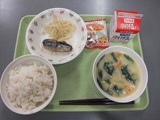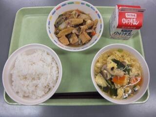 麦ごはん 肉団子スープ 大豆とひじきの炒め煮
