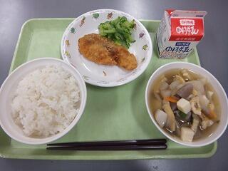 麦ごはん けんちん汁 白身魚フライ 添えきゅうり