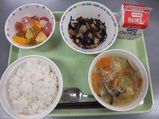 子どもたちは、肉団子スープとデザートが楽しみだったようです。