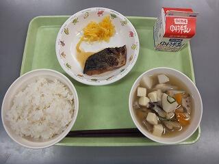 麦ごはん 根菜汁 ぶり照り焼き 添え白菜