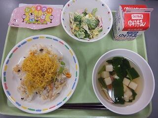 ちらし寿司 すまし汁 ブロッコリーサラダ ひなまつりゼリー
