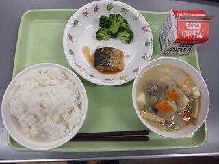 麦ごはん みそけんちん汁 さばみぞれ煮 添えブロッコリー