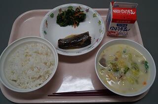 麦ごはん 豆乳豚汁 さんま甘露煮 おかかあえ