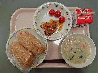 揚げパン 豆乳スープ 照焼チキン ミニトマト