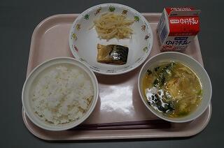 麦ごはん かき玉汁 さばのみぞれ煮 添えもやし