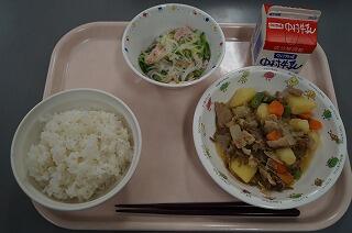 5月最後の給食は、人気のカレーでした。じゃがいも