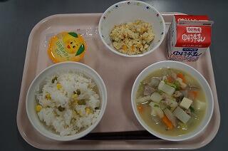 ピースごはんは、えんどう豆とコーンが入っていました。