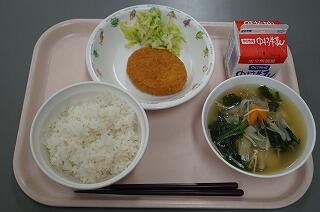 麦ごはん コロッケ 添えキャベツ 肉団子スープ