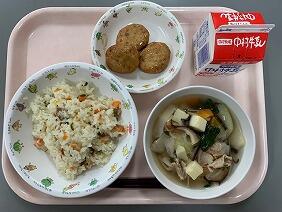 麦ごはん 土佐酢和え 高野豆腐の煮物 十五夜デザート