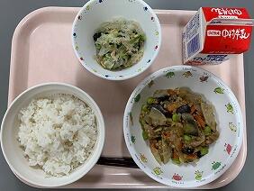 麦ご飯 おかかマヨ和え 豚肉となすのみそ炒め