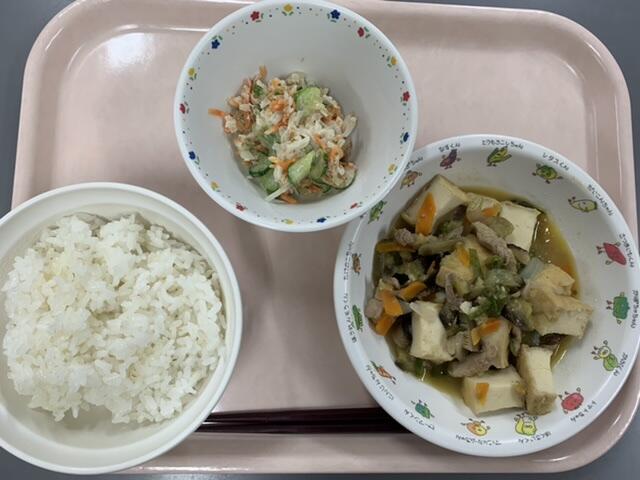 麦ごはん 戸佐酢和え 高野豆腐の煮物