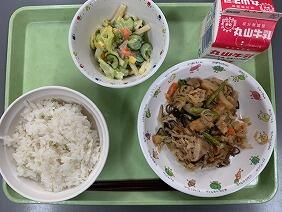 今日は、給食感謝献立でした。明治22年に山形県で始まった無料のお昼ご飯をモチーフに、当時を再現しています。小松菜のたくあん炒めは、ポリポリしていて、たくあんの塩気で小松菜も食べやすかったです。鮭は少し固めで食べ応えがあり、塩味がごはんとよく合います。栄養すいとんは、みそ味でほっこりとあたたかく、すいとんもモチモチしていておいしかったです。毎日おいしい給食が食べられることに感謝です。