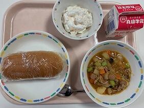 フルーツクリームは、クリームが濃厚でフルーツとよくからみ、とっても甘くておいしかったです。めったに出ない献立なので、子どもたちもパンにはさんで嬉しそうに食べていました。ウインナーのチリソース煮は具材が小さく刻んであり、食べやすかったです。