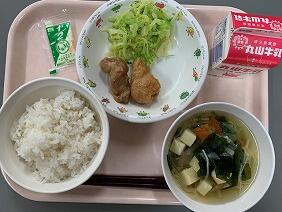 今日はリクエスト献立のチキン南蛮です。甘酸っぱいタレが鶏肉によくからみ、タルタルと一緒に食べるともうごはんが何杯でも食べられます。添えキャベツもほどよい塩気で箸休めにピッタリでした。わかめスープはコクがあり、具だくさんでとてもおいしかったです。