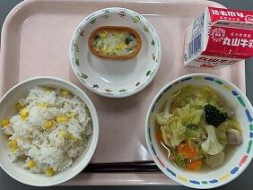 コーンご飯は、コーンの食感と彩りが良く、食欲をそそりました。グラタンはカップも食べられるようになっていて、サクサクで中身がトロトロでおいしかったです。ポトフは、豚肉とウインナーがゴロっと入っていて、食べ応えがありました。体が温まるメニューでした。