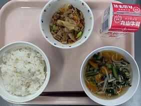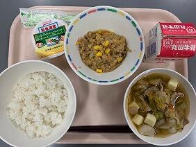 肉みそは、甘辛い味付けとみそがマッチしていて、コクがあってとてもおいしかったです。ごはんにかけて丼にして、子どもたちはパクパク食べていました。キムチ汁はピリ辛で、食欲をそそりました。具がたっぷりで最後まであたたかく食べられ、体がポカポカになりました。