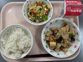 麦ごはん 元気サラダ 高野豆腐と厚揚げの煮物