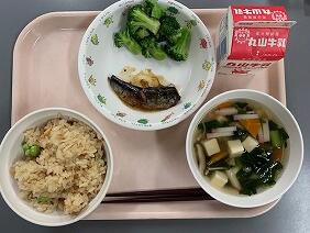 たけのこごはん いわしおかか煮 添えブロッコリー すまし汁