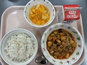 ポークビーンズは、豚肉がごろっと大きめに切ってあり、食べ応えがありました。いろいろな種類の豆も楽しめて、栄養ばっちりです。フルーツレモンゼリー和えは、みかんやパイナップルが甘くて、冷たくでデザートにピッタリでした。さわやかなレモンのゼリーがさっぱりとおいしかったです。