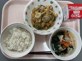 今日は待ちに待ったチキン南蛮の日です。子どもたちは、今週のはじめからずっと「金曜日はチキン南蛮なんですよ~。」と楽しみにしていました。おいしいタレが肉にたっぷり絡んでいて、一口でご飯がどんどん進みました。2年生は「5個でも食べられます!」と嬉しそう。わかめスープは具だくさんで、中華味で体が温まりました。今日もおいしい給食に感謝です。