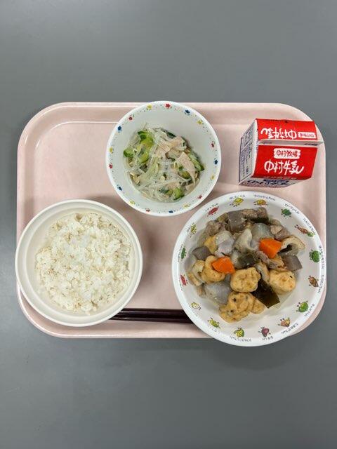 今日は親子丼でした。具がたっぷりの親子丼、お腹がいっぱいになりました。いももち汁にはれんこんが入っていて、シャキシャキ感がアクセントになっておいしかったです。