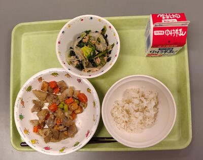 今日は午前中に味覚の授業があり、五味(酸味、甘味、うま味、苦味、塩味)について学習しました。給食のメニューを見て、今日習ったことを思い出し、味わって食べていた子供もいました。