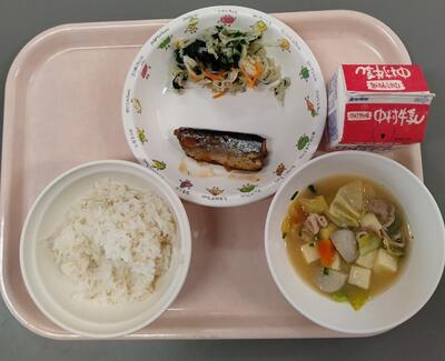 今日のお汁は豚汁かと思いましたが、食べるとピリッと辛く、献立表を確認すると「ピリ辛汁」との表記が。
