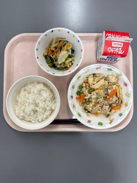 豆板醤の辛みがちょうど良く、子どもたちもおいしそうに食べていました。毎日の給食に感謝です。