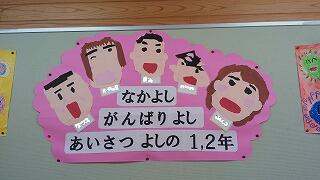 1、2年生のクラス目標は「なかよし がんばりよし あいさつよし」です。
