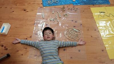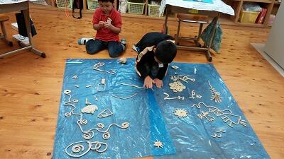 やわらかくなったところで、どんどんひもをつくって、いろいろな形にしてきました。