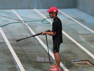 まずは念入りに準備運動。写真の通り、大河内小のプールはビニルハウスなので、準備運動で汗ばんできます。とても暖かいです。