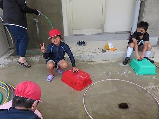 子どもたちには冷たい山水ですが、カエルにとっては快適なようでした。