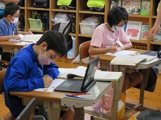 インターネットの通信を使った授業ですが、読んだり書いたりすることは、いつもの授業と変わりません。