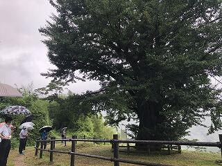 十根川伝建地区と八村杉。伝建地区の高台に登って、ようやく杉のてっぺんを見ることができました。後の写真で出てくる、観光ガイドの高島さんのお話の巧みさもあいまって、気分はすっかり修学旅行です。ぜいたくな時間です。
