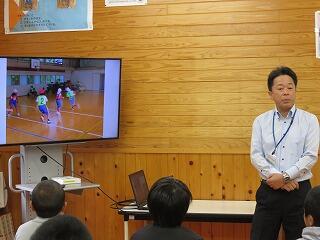 画面の向こうで授業を進めているのは、椎葉小学校の5年生の先生です。村内小学校5校中4校は、大河内小と同じように複式学級なので、5・6年担任の先生が修学旅行に行きます。椎葉村に唯一残る椎葉小の5年生の先生が、村内5校をつないで授業を進めてくださっているのです。ありがたいです。