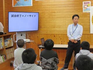 運動会もみんなが全力を尽くしたからこそ、「ノーサイド」の思いをもてたのだと思います。いいまなざしで聞いていました。