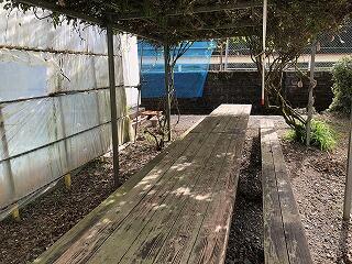 先週13日の記事でお伝えした藤棚。藤棚の下にあるベンチは、いつもはこんな感じです。