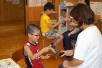 今日のテーマは「メディアとの上手な付き合い方」です。養護教諭の安藤先生から、メディア漬けの生活による影響についてのお話を聞いた後で、「メディアコントロールにチャレンジしよう!」ということで、親子で話し合い、夏休みのルールを決めました。