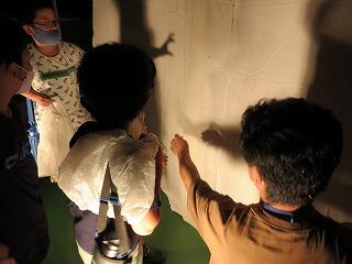 夕食の後は、1日目のメインの活動「ライトトラップ」です。白布に明かりを当てて虫を集めます。
