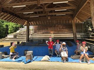 神社のまわりを探検します。だんだん打ち解けて、話も弾んできます。