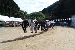 地区のみなさんの種目「長縄とび」。端っこの人は高く跳ばないといけないのですが、それにしてもすごいジャンプ力です。高い!