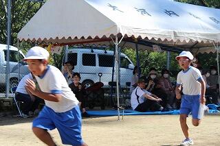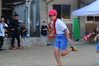 小学生の最終種目「全員リレー」。白熱のデッドヒートで、最後まで力強く駆け抜けました。