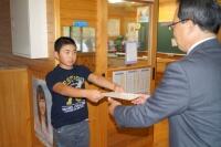 その他に,県文集「ともだち」に名前が掲載されたY・Nくん(2年)とK・Jさん(3年)とY・Hさん(4年)、そして挿絵が採用されたM・Sくん(1年)に賞状を授与しました。
