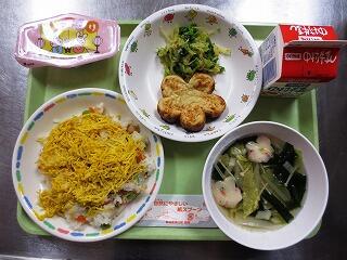 ちらしずし ・ すまし汁 ・ 花形豆腐バーク ・ 菜の花の和え物