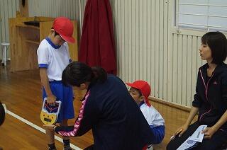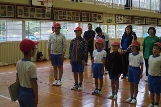 聞いて、6年生に代表で練習してもらいました。他の子ども