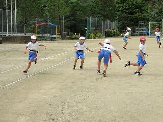 汗をかきながら、みんな笑顔で走り回っていました。夏休み明けでも、みんな元気です。