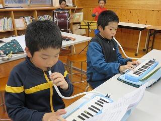 3・4年生の担当は、鍵盤ハーモニカと太鼓です。太鼓が入ると演奏が締まります。みんな真剣な表情です。