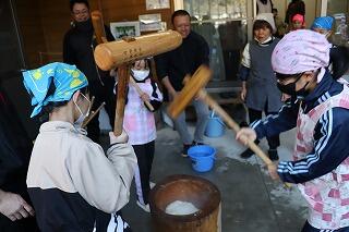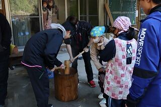 その後は、もちつき大会をしました。保護者の皆さんのおかげで今年も美味しいお餅を食べることができました。ありがとうございました。