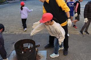 焼きいもができあがると、高学年の子たちから「作った2年生から、いいの選んで。」という声が聞こえてきました。