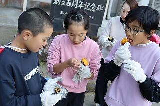 2年生が大切に育てたさつまいもが大きくなり、今年は大豊作。早速みんなで焼きいもにして食べました。